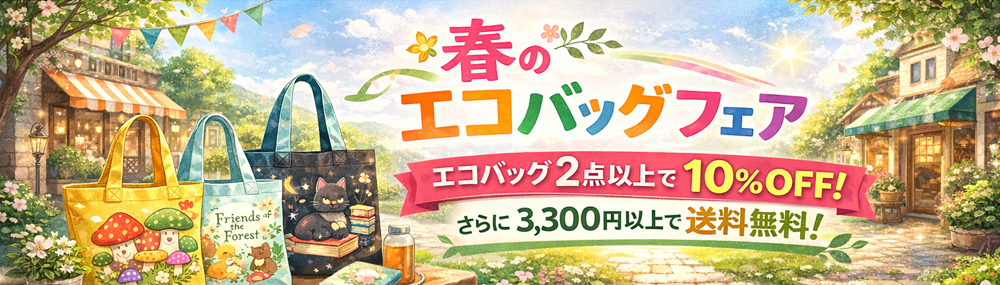 新しいエコバッグを持ってお出かけしよう!このコーナーのエコバッグ、2点以上お買い上げで10%OFF!しかも!3,300円以上で送料無料!(2026年4月12日(日)23:59まで)
